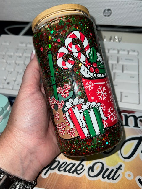 16 OZ PREMADE GLASS CANDYCANE